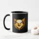 The artwork uses layered shapes and strong contrast to stay sharp as it wraps around the mug, creating a balanced look from every angle. The central emblem remains clear and readable at a glance, making it a strong desk or kitchen piece rather than a decorative pattern.