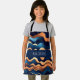 Golden Wave Blue Watercolor Abstract Pattern Apron