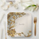 Golden Wavy Leaves Floral Paper Plate