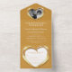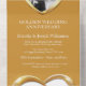 Golden wedding anniversary party event with one photo holder, detachable RSVP, and no envelopes required invitation design. Beautiful liquid gold effect in a heart shape printed graphics 50 years wedding anniversary invitations, personalise with your own wedding anniversary party details, a photo of the happy couple. The twenty-fifth wedding anniversary is traditionally associated with gold metal and the heart symbolises love. Other matching items are available. Graphics and design by Sarah Trett for www.mylittleeden.com and www.mylittleedenweddings.com
