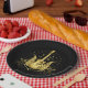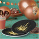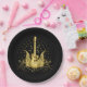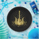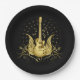 Fantasy style golden guitar with wings, scrolling details and musical notes.