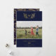 Golden Winter Sprigs Monogram Photo Blue Holiday Card