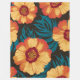 Golden-Yellow and Red Flowers with Teal Leaves Fleece Blanket