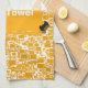 Golden Yellow and White Mini Tile Design Tea Towel