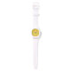 A pretty, white Sporty Wristwatch, with a pattern of golden daffodils, from a handpainted watercolour design by Judy Adamson. This daffodil pattern will fit any of the watches.