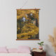 Decorate a living space with this vertical, hanging wall tapestry with wooden tops that features the photographic image of an autumn colored Japanese Maple tree with golden yellow leaves. A stunning, botanical image!