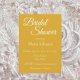 Simple style, bridal shower invitation that features a trendy, golden yellow colour background along with the future bride's name and party event time and location, contact, etc., printed in white, stylised lettering. Personalise your invitation by replacing text with your own bridal shower information. Select your invitation paper style and quantity.