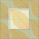 This autumn leave pattern design features a cluster of three Aspen leaves in different stages of fall colour over a pastel green background.