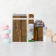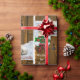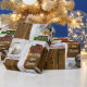 Beautiful Goldendoodle holiday art. The Goldendoodle puppy waits on the snow covered porch for Santa to arrive, guarding Santa's cookies.