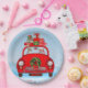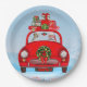 Goldendoodle Dog In Car With Santa Claus Paper Plate