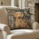 Charming illustration a Goldendoodle in an old English garden in the style of William Morris.