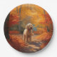 Goldendoodle in Autumn Leaves Fall Inspire Paper Plate