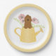 Cartoon illustration of a Goldendoodle popping out of a watercan filled with flowers. Perfect for summer and spring!