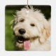 at christmass as a hanging decration for the chritmass tree.. its white porcline or cramic but very well made with added photo on one side.. also has a lovley red bag to keep it in.. execlent printed text in bold and black stands out well aganst the blue background of the photo.