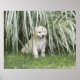 Goldendoodle puppy sitting under tall grasses poster