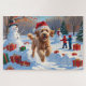 Goldendoodle Running in Snow with Christmas Hat Jigsaw Puzzle