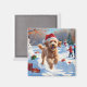 Goldendoodle Running in Snow with Christmas Hat Magnet