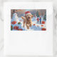 Goldendoodle Running in Snow with Christmas Hat Rectangular Sticker