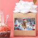 A fluffy Goldendoodle runs playfully through the snowy winter scene, wearing a festive red Christmas hat. This lively design highlights the breed’s curly coat, affectionate nature, and cheerful personality while capturing the joyful spirit of the holiday season. A heartwarming winter moment filled with festive charm.