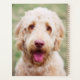 Up close shot of a goldendoodle smiling. Designer dog, golden retriever and poodle.