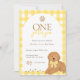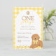 Goldendoodle Yellow Gingham First Birthday Invitation