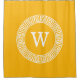 Goldenrod Wht Greek Key Rnd Frame Initial Monogram Shower Curtain