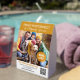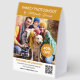Let current and future clients know that you have a special offer right now with this special offer tabletop paper sign you can personalize with a photo taken by your photography business, your QR code, your logo, your website, and customizable text. The percentage off is printed in white against a faux gold zigzag-edged round label.
