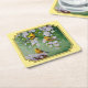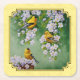 Goldfinch Birds & Apple Blossoms Yellow Square Paper Coaster