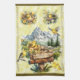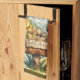 Decorative yellow goldfinch kitchen towel - Mountain scene with rustic wood sign. Loden green trim. Thanks for looking.