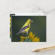 This colourful card features a photograph of a goldfinch perched upon a giant sunflower.