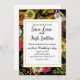 Goldfinches in the garden on black invitation