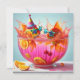 Whimsical two goldfish wearing funky star gunglasses and party hat in a punch bowl with orange slices and cherries.