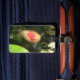 This awesome luggage tag features a photograph of a nosy goldfish staring up from its watery world wondering what is going on. The fish is white with a pretty red marking on its head. There is customisable text on the back of the luggage tag allowing you to personalise it with your name and any other text of your choice.