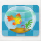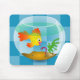 Fish in goldfish bowl with a worm hoping not to get eaten.