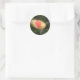 This sheet of round stickers features a photograph of a nosy goldfish staring up from its watery world wondering what is going on. The fish is white with a pretty red marking on its head.