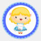 Goldilocks in scalloped border on blue and white gingham. Thank you for Goldilocks graphics from InkleyStudio.