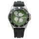 Has heft and feel of expensive stainless steel quartz wrist watches. Solid construction and good looks. Although it had a really top quality rubber strap, I substituted a stainless steel "Shark" style mesh strap, which I think is the most comfortable strap available. Perfect. True colors of original image. Clear, crisp image precisely aligned and spaced.