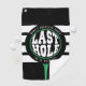 Celebrate the groom’s last swing before the ring with this green, black and white bachelor party golf towel. The design features the phrase "Last Hole He’ll Ever Hit," making it a fun and fitting choice for a golf outing or bachelor weekend. Personalize it with the groom’s name and event details for a swinging keepsake!