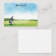 Personalise your stationery with this elegant Golf Bag on the Course with Name for Golfer design. A serene watercolor scene features a single golf bag standing on lush green grass with rolling hills and a soft, airy sky above. The minimalist open-space layout creates a peaceful, refined feel — perfect for adding a custom golfer’s name or monogram. Ideal for thank-you cards, note cards, or personalised golf gifts that reflect timeless golf style.