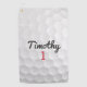 Golf Ball Dimples and Black Name Red Number Towel