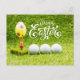 Golf ball Happy Easter with easter egg on green Ho Holiday Postcard