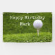 Golf ball is on tee on green grass background banner