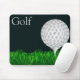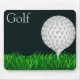 Image of Golf ball, grass field and dark grey background with personalised text template.