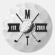 Golf Ball Texture & Club Initial Monogram Classic Round Sticker