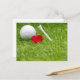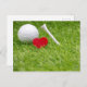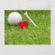 Golf ball with love heart shape and tee postcard
