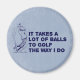 "It takes a lot of balls to golf the way I do!" A vintage golfer swinging decorating the funny golf saying. Buy as a gift for your husband, your wife, your grandma or grandpa, your sister or brother, your boss, your golfing buddy - perfect for birthdays, fathers day, mothers day, anniversaries, christmas or any other gift giving occasion!