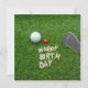 Golf birthday with love and golf ball & Sand wedge on green grass birthday card