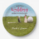 Golf bride and groom with golf ball tee Wedding Paper Plate