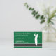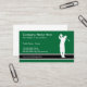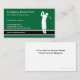 Here is a golf theme business card template with cool design in green, black and white with ability to customise the background colour, text, and layout. Includes a golfer swinging a golf club designed for any golf shop, golf school, or golf equipment and supplies business.