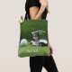 Golf cart and golf ball on green grass Golfer Tote Bag